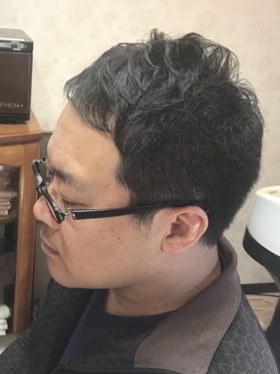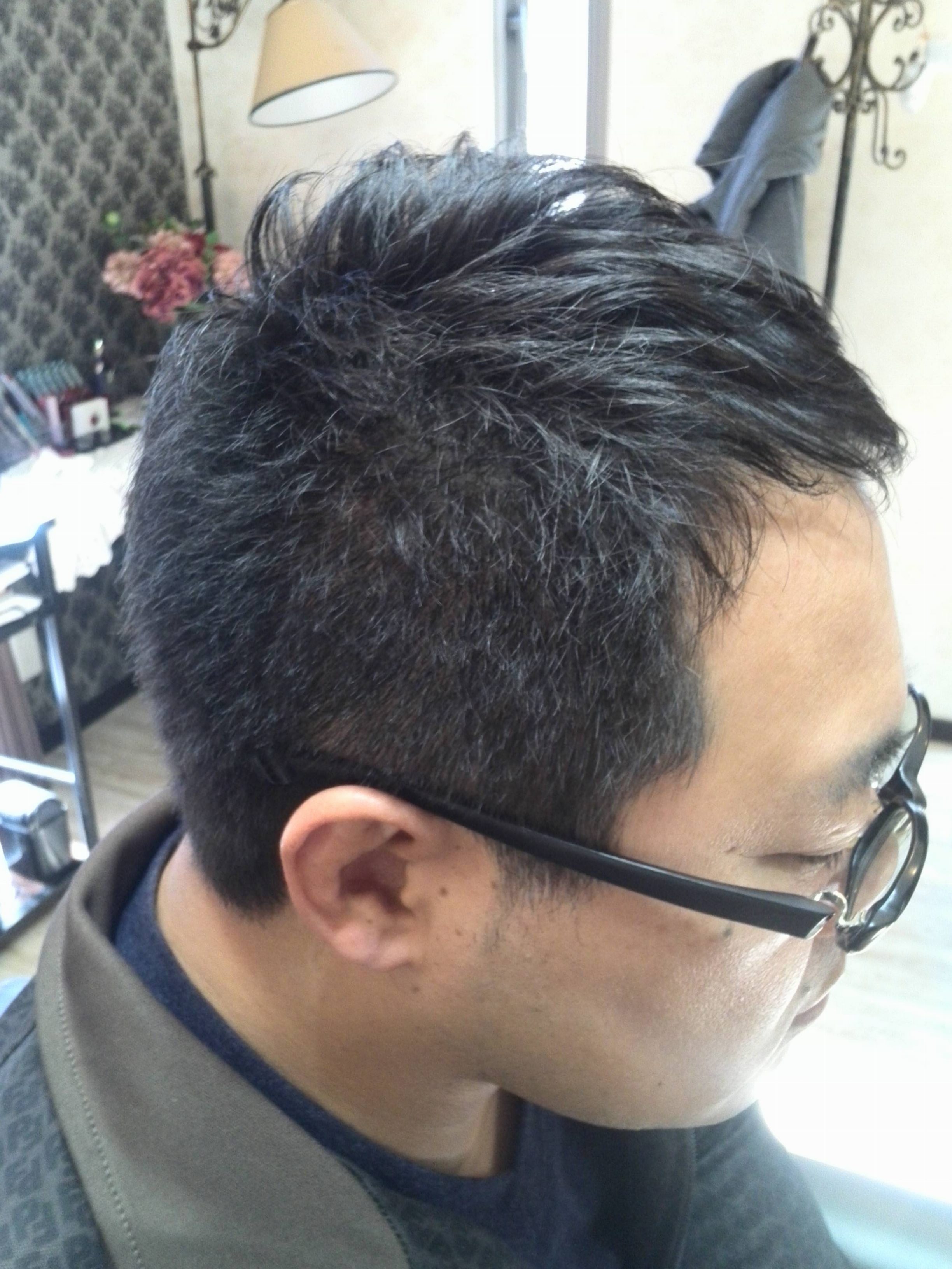 サイドのボリュームがすぐに出ることがお悩みでいらっしゃいましたが、極力短くスッキリしトップにボリューム&動きが出るようにカットすることで、目の錯覚を利用しふくらみが気にならなくなるようにカットをさせて頂きました